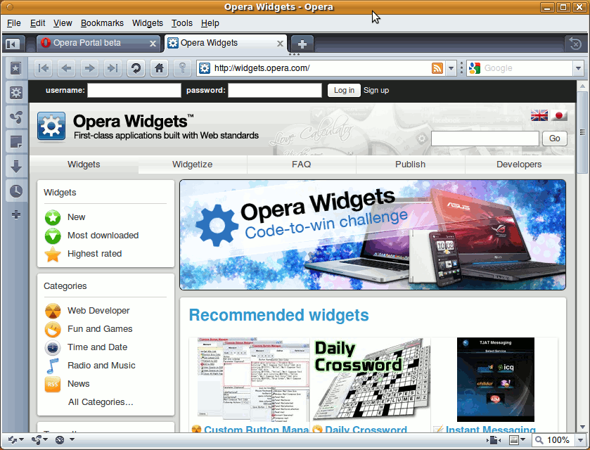 The first thing that you notice about Opera is the number of versions there are on the download page and this is excellent. All the top distros are catered for and it correctly detected Ubuntu and offered a .deb package. A couple of clicks of the mouse and Opera was installed, so why can't all software be like this? Opera doesn't have extensions like Google or plug-ins and add-ons like Firefox, but it does have it's own unique widgets. They are a bit like KDE Plasma widgets, only better. There are hundreds of Opera widgets and there are categories for mail, science, RSS, games, webcams, social websites, and so on. Widgets appear on the desktop without any window title or borders, and they are really useful. There are lots of great features in Opera, like thumbnails when you mouse-over a tab, a note-taking panel on the left, a turbo mode to speed up slow internet connections, bookmark syncronisation across computers, speed dial screen showing thumbnails of your favourite sites, and lots more. It completed Acid Tests 1, 2 and 3 with no problems. JavaScipt performance is poor, but it's got an accurate page rendering engine.