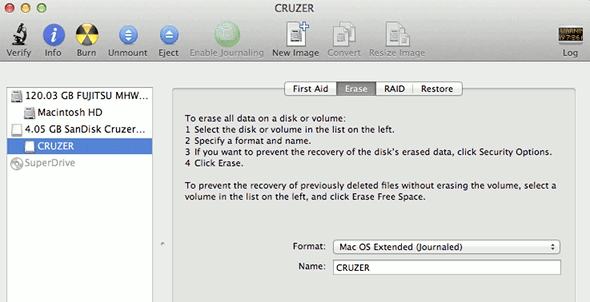 Access secret features in OS X Disk Utility
