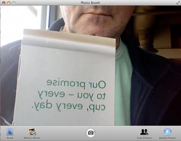 In the last tip we pointed out that you could use Photo Booth as a mirror. Think about this for a minute though. Although the image on the screen looks perfectly natural it is actually flipped horizontally so that it appears to be a mirror image. It isn't actually what the camera sees. To see what what this means, hold a newspaper or magazine up in front of your Mac's iSight camera. You can't read the text because it is backwards, just like a mirror. It's worth bearing in mind that your snaps are mirror images and not real images.