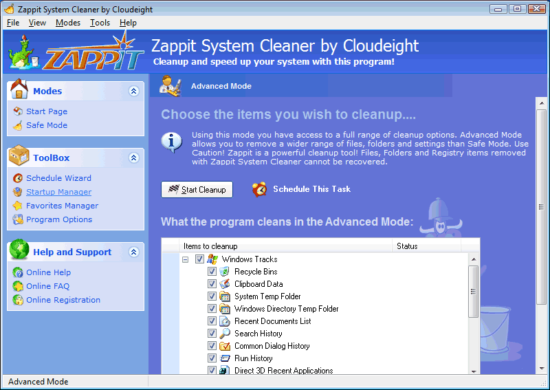 There is a Startup Manager that lists the programs that start with Windows, but it's no better than msconfig. A Favorites manager sorts Internet Explorer Favorites and Start menu items into alphabetical order. The program has a Windows XP-style interface, which is OK, but it doesn't really look right in Windows 7. Zapit System Cleaner is a simple utility, but the competition is stiff and all these utilities are free. You are better off with one of the others.
